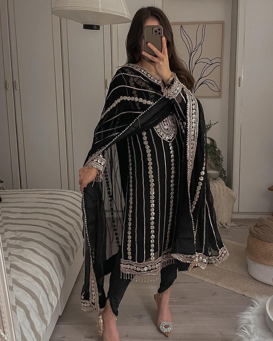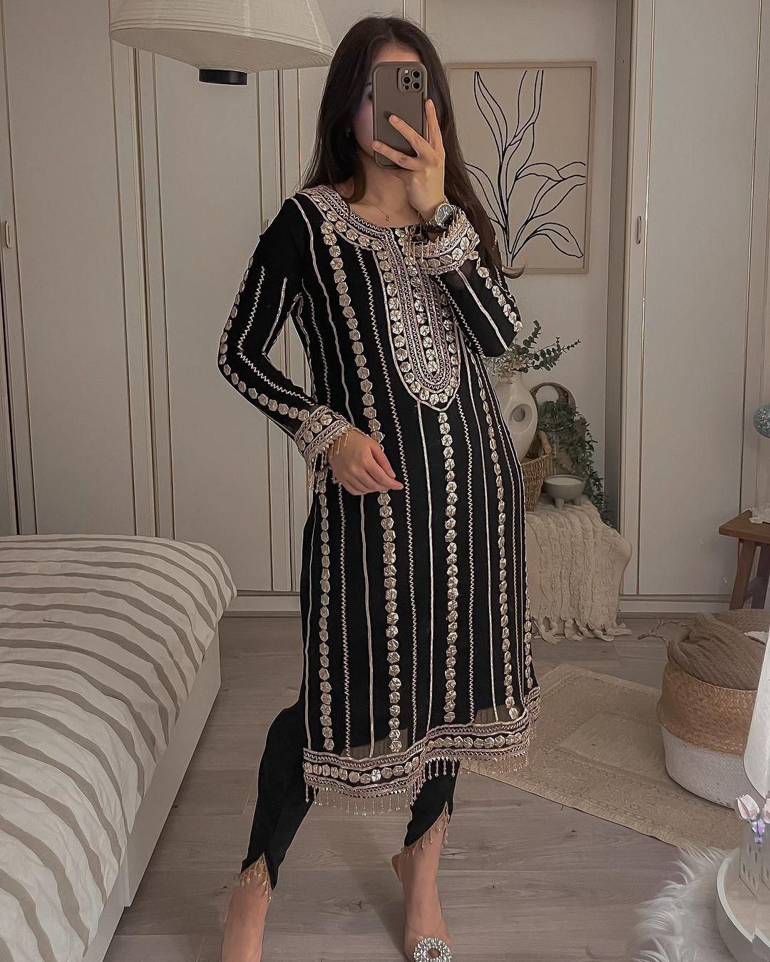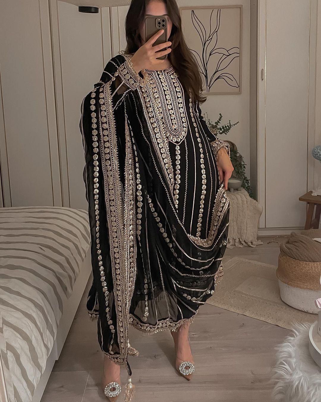Designer Wear Faux Georgette Embroidered Suit With Real Foil Work