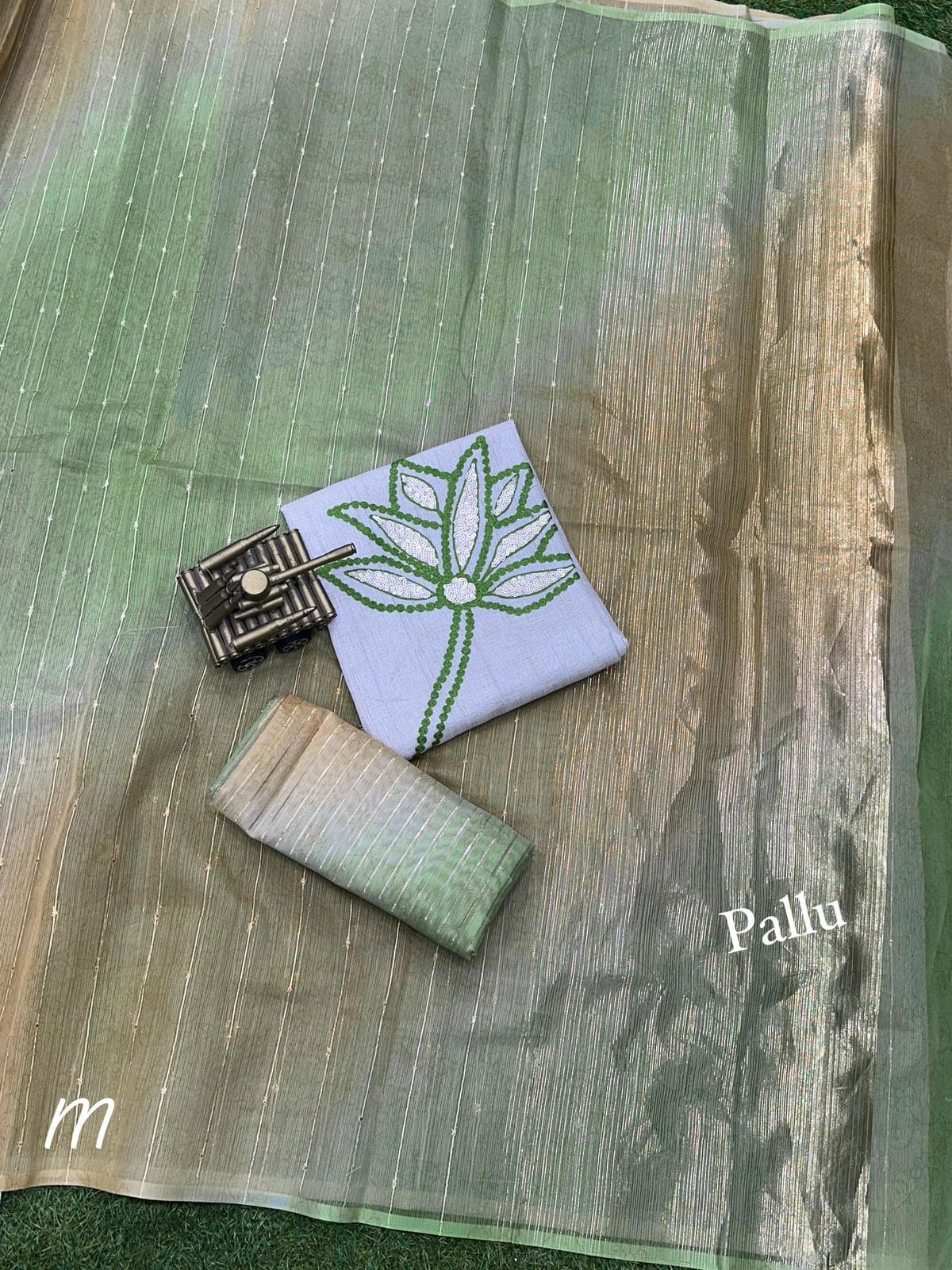 3) One running blouse with zari lining.