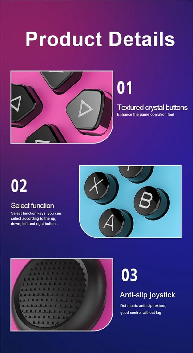 2) This retro game console rocker features a semi-curved protrusion that fits the big mother finger better and is non-slip. You can choose the corresponding operation mode according to different games. The L R key design on the upper allows you to release your vigor.
