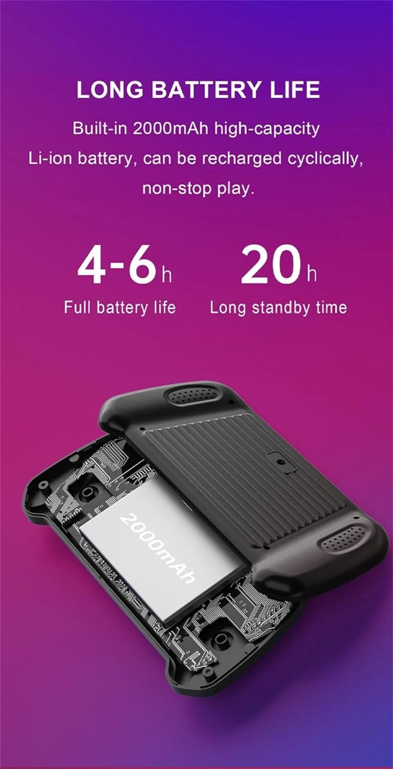 3) Its upgraded version handheld game console 4.3-inch color screen, the screen color is fine and delicate and soft to effectively reduce eye fatigue, high-resolution picture quality is clear.